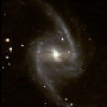 Barred Spiral Galaxies The rotational dynamics of barred spiral galaxies are poorly understood, although they are very common objects in the universe at large. Our own Milky Way is suspected of being a member of this class of galaxies. Shown at the left top is NGC3627 (M66) in the constellation Leo the Lion. Below it is NGC1365 in Fornax the Furnace. | |||