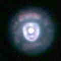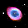 Planetary Nebulae Planetary nebulae (a misnomer, as they have nothing to do with planets) are relatively small and often odd-shaped clouds of expanding gas and dust that represent the the final stage in the life cycle of a small to medium sized star (from ½ to 8 solar masses). They are formed from the outer envelope of a red supergiant when it goes through what is called "helium shell flash". This occurs after all the helium in the core has been consumed and the star is burning helium in shell around the core and hydrogen in second shell around the helium. This two tiered fusion structure is inherently unstable, and within a hundred thousand years, the instability builds into a catastrophic pulse where the rate of helium burning increases several million fold in just a few minutes. The energy released by this nearly explosive day-long event ejects the entirety of the star outside of the core (up to 80% of the mass) into space. Deprived of the gravitational pressure from its outer self, the helium burning is extinguished, and the core slowly collapses into a white dwarf. For the next twenty thousand years, the previously ejected matter is brightly illuminated by the hot stellar cinder, which is all that remains of a once noble star. If the progenitor star is sufficiently large, helium shell flash and mass ejection will reoccur in a repeating sequence, producing a complex multi-layered nebula. Each layer contains a different mix of elements and radiates with its own unique set of colors. Three examples are shown at the left. The Ring (top) consists of an equatorial ejection with little or no bipolar component. This is possibly caused by a high rotational rate in the parent star. The Dumbbell (center) was a spherical ejection, but an unseen companion star has swept up most of the ejecta in its orbital path. The Eskimo (bottom) is an excellent example of a multi-layered planetary nebula, with both spherical and bipolar components. | |||